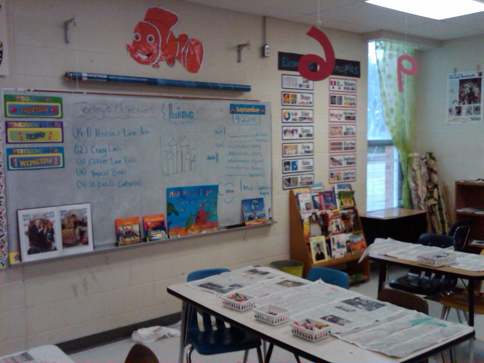 | I am teaching in an ordinary classroom so storage space is limited and I do not have a sink at this school. That is definitely a setback with painting projects, but we make do. |